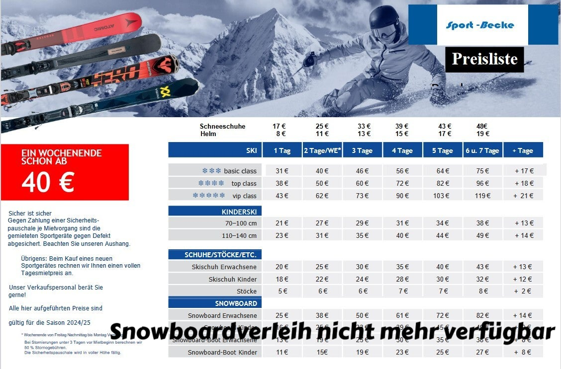 Alpinski Verleih - Preisliste